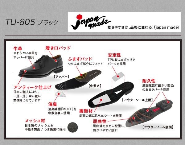 本革使用なのに、スニーカーやウォーキングシューズのような履き心地の快適紳士靴texcy luxeの日本製モデル。日本の職人により、一足一足丁寧に加工を施しています。カジュアルなジャケットやトラウザーズに合わせるとおしゃれなユーチップデザイン。もちろん、ビジネスユースにもおすすめ! |