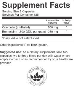 -. Binding : Health and Beauty -. Brand : Swanson Premium Brand -. Feature : Swanson Premium / Swanson Quercetin & Bromelain 250/78 mg 250 Caps / Per GMP guidelines set forth by the FDA, most products are formulated for 24 months from the date of manufacture. Liquids and probiotics are formulated for 12 months. -. Label : Swanson Premium -. Manufacturer : Swanson Premium -. PackageQuantity : 1 -. ProductGroup : Health and Beauty -. ProductTypeName : HEALTH_PERSONAL_CARE -. Publisher : Swanson Premium -. Studio : Swanson Premium -. Title : Swanson Quercetin & Bromelain 250/78 mg 250 Caps