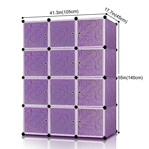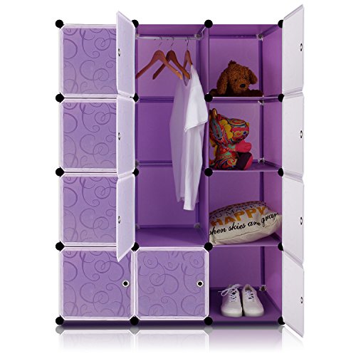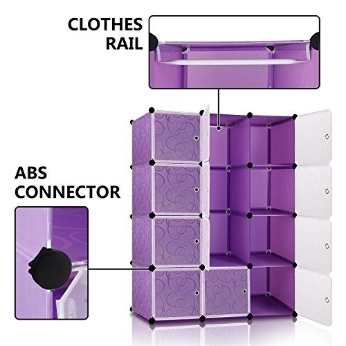 Lifewit 4-Tier Clothes Closet DIY Portable Wardrobe Freestanding Large Space Storage Organizer Purple with White Doors