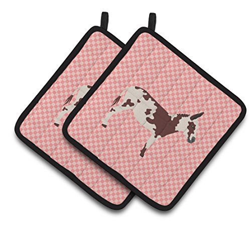 Caroline's Treasures BB7851PTHD American Spotted Donkey Pink Check Decorated Pot Holder, 7.5" x 7.5", Multicolor