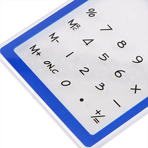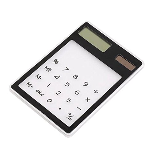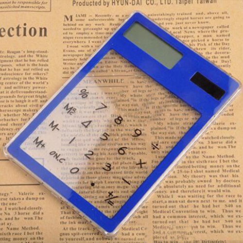-. Feature : Material: plastic, environmental protection material; / Specifications: 125 * 81 * 5.5mm; / 8-digit display mini-calculator; / Transparent innovative design, simple and generous style, suitable for business, gift, office; / Battery: solar energy storage, calculator built-in intelligent switch, without manual, 1 to 2 minutes after use, the calculator automatically turn off the power.