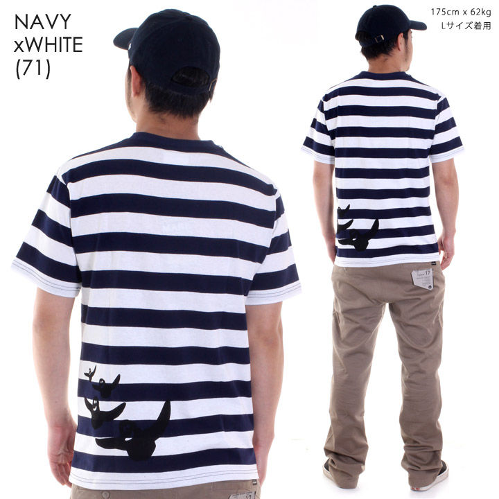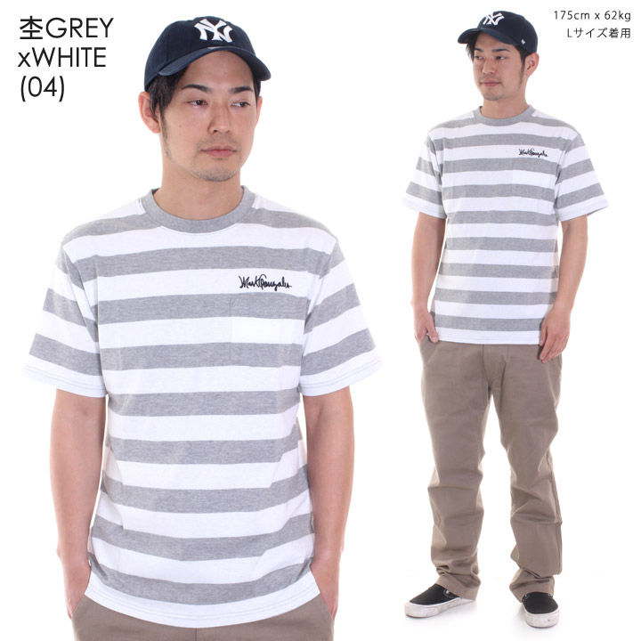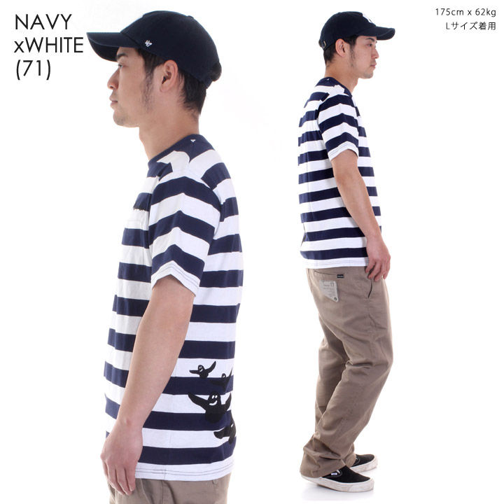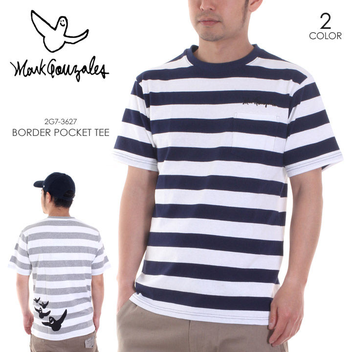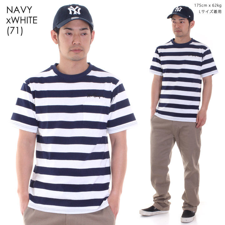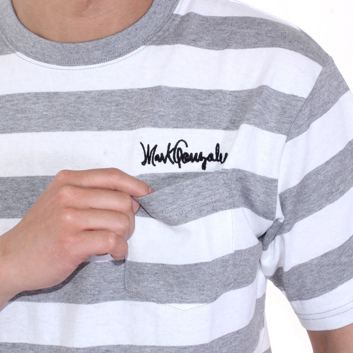 スタンダードなピッチ幅のボーダーをデザインしたポケットTシャツです。