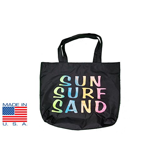 Black Nylon Beach Bag - Sun Sand Surf Heavy Nylon Canvas With Lining Made in USA