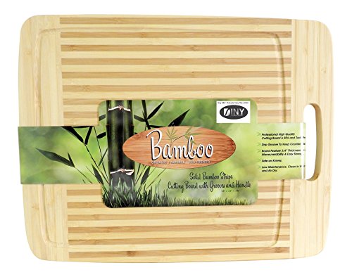 - Solid Bamboo Stripe cutting board with grooves and handle