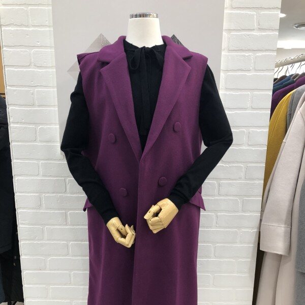 롱기장의 카라가 있는 베스트로 원피스나 슬랙스에 입으시면 예쁩니다