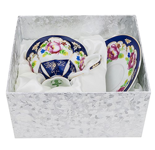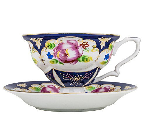 Studio : Fine Porcelain Publisher : Fine Porcelain Product Description Turn your regular breakfast tea time into one filled with grace and beauty with this amazing tea cup and saucer set by Fine Porcelain. Skillfully decorated with blossoming pink roses, a symbol of gentleness and admiration, this flamboyant tea cup set will be a great addition to your dinnerware collection. Original, timeless and charming, the set is rendered in high-quality fine porcelain and combines classic royal design with intricate detailing and lustrous gold banding, that will easily complement even the most upscale table setting. A great solution for festive occasions, tea times and everyday meals, this vibrant set will bring infinite beauty and sophistication to your home. Besides, this magnificent vintage tea set comes in a beautiful satin-lined box, making it a perfect gift idea for any special occasion, birthday, wedding, christening, Mother's Day or anniversary. The perfect accent for any dinner table, it will create a unique afternoon tea atmosphere or bring your English-style tea party to a whole new level. 0