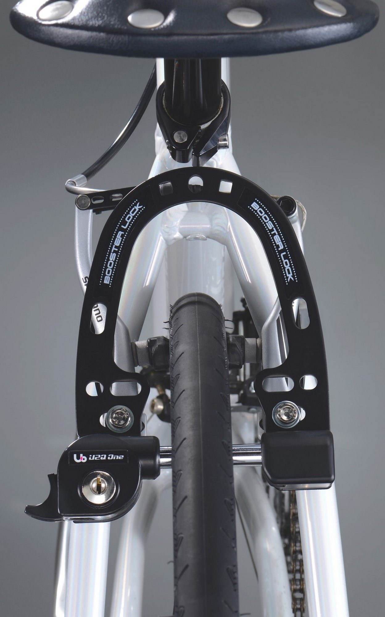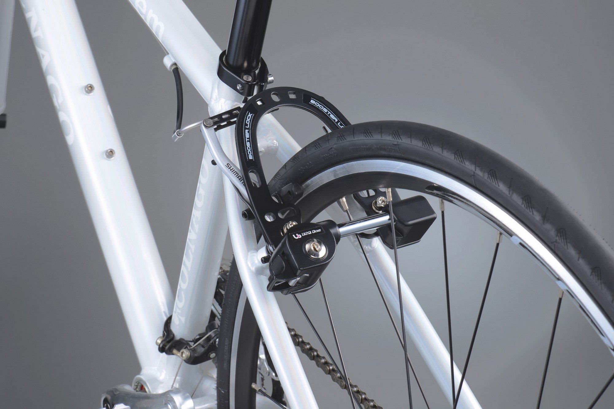I attached it to the road bike through the mounting screw of the caliper brake in the hole on the upper side. In the fixing method, the upper hole was tightened together with the caliper brake and the metallic hose band was fixed to the seat stay in the vertically elongated hole on the right and left. When tightening together with the caliper brake, care must be taken so that the lock will not be distorted due to the step difference between the seat stay and the seat stay bridge, for example by pinching the washer on the frame side. After installation, the movement of the lock did a good shopping well.