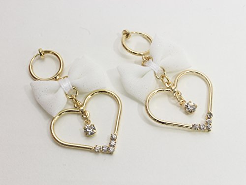 -. Title : ハートリボンイヤリング ラインストーン ゴールド スプリング式 リング キッズ レディース 2個セット 3カラー