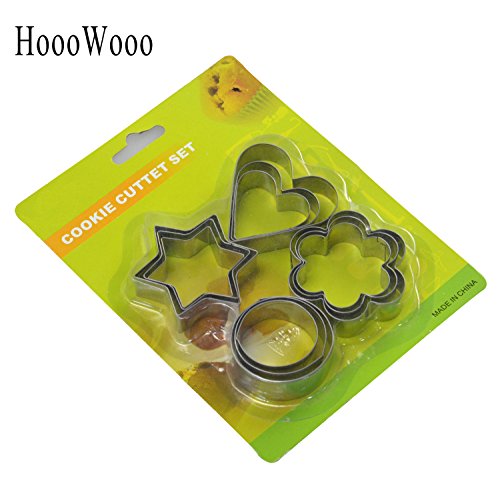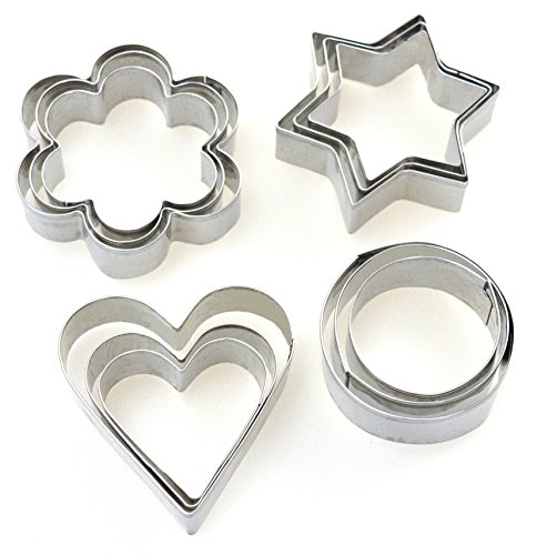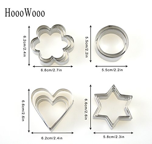 HoooWooo 12 Pieces Stainless Steel Cookie Cutters : 3 Stars Shape, 3 Flowers Shape, 3 Hearts Shape, 3 Round Shape