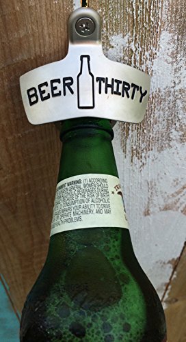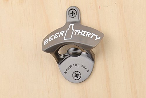 Barware Gear Wall Mount Bottle Opener Beer Thirty with Free Stainless Steel Mounting Screws. Pop the cap and open your Beer and Soda in Style. Wall Hung Beer Opener for Bar or Kitchen. Gun Metal Black