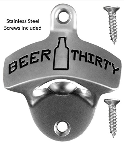 Beer Thirty Wall Mounted Bottle Opener with Free Stainless Steel Mounting Screws by Barware Gear