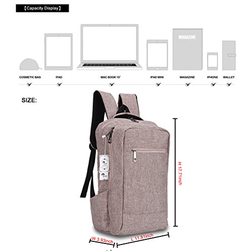 ★ROOMY COMPARTMENT - This travel laptop backpack approximate dimension is 17.71"H x 11.81"W x 3.93"T,Laptop compartment fits up to 15.6",holding your laptop(can hold laptop up to 17-inch in main compartment),tablet,Macbook Air/Pro,ipad,phone,pen,notebook,wallet,umbrella,books,folders,and other things as many as possible.