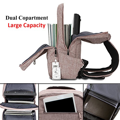 ★LARGE CAPACITY & DUAL COMPARTMENT - A super organized laptop backpack with quick-access & large front pockets(6.5" X 8.75") for your books,folders,ipad,phone,cords and cards.Dual compartment can carry more things as you want,front compartment to keep your phone,ipad and gadgets safe,large main compartment fits books,lunch,a light jacket and other carry-on essentials.