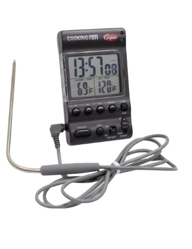 Cooper Atkins Digital Thermometer with Probe is a clock, timer and thermometer with a 3' probe wire. Probe is heat resistant stainless steel. Stand and wall mount options