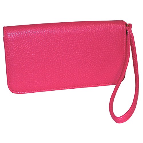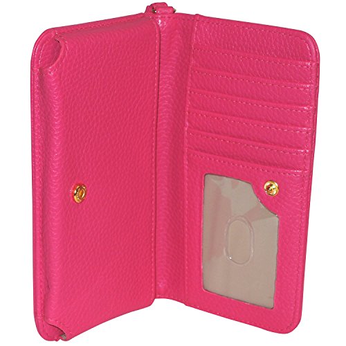 Keep your essentials one snap away with this Buxton wristlet wallet featuring a , a well- organized interior that includes a place for your smartphone. and Credit Cards , & ID. Enjoy the slim profile of this RFID blocking wristlet cell phone wallet. Find yourself briskly walking through crowds while holding your wallet with your phone inside in just one hand. The RFID wallet is designed to protect your personal information from wireless electronic reading devices. You will feel secure knowing that your encrypted card data is safe when placed within our special lining. 1 Year Warranty.