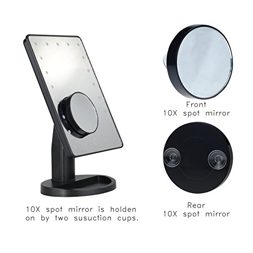SALE! LED Lighted Vanity/makeup Desktop Mirror with 10X Magnification Spot Mirror - 21 pcs LED (Black)