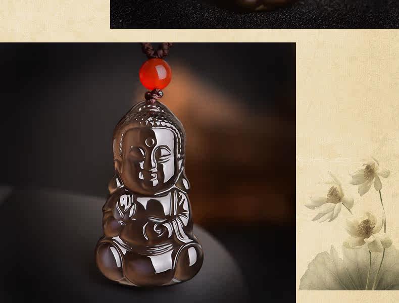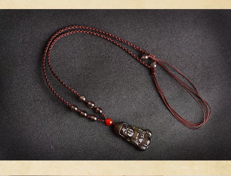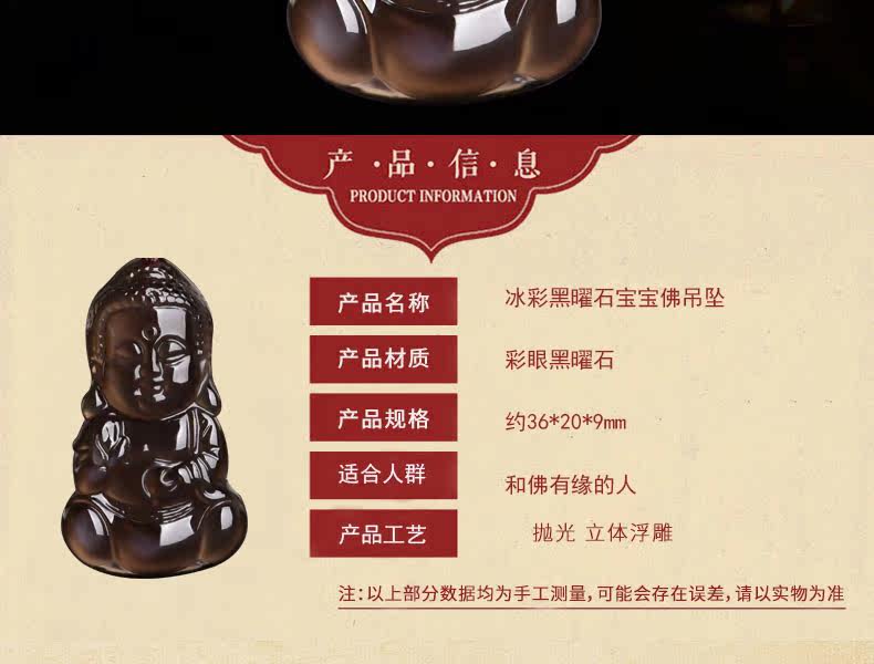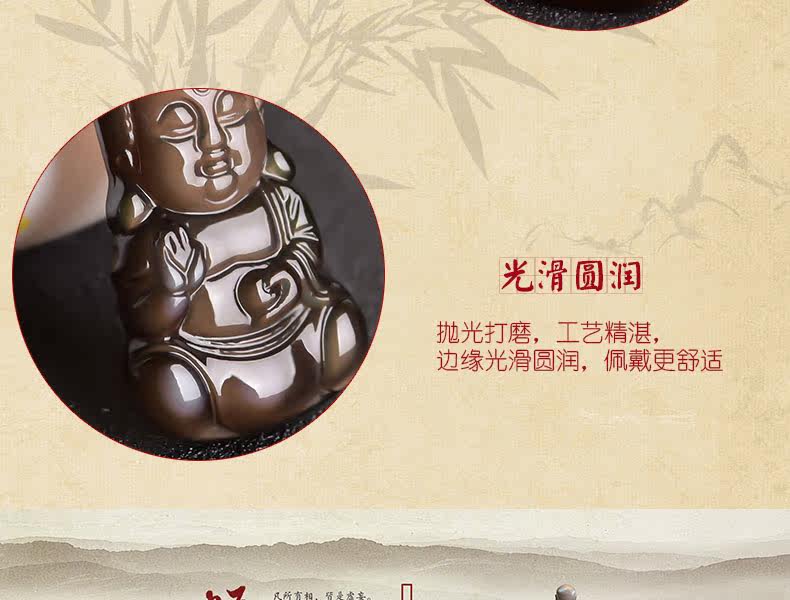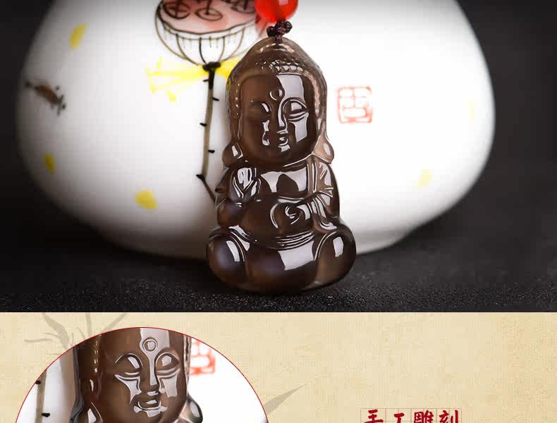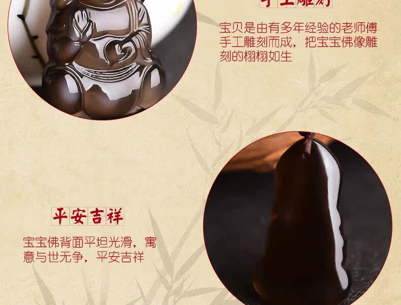 开光天然黑曜石宝宝佛吊坠释迦摩尼项链娃娃佛压惊挂件男女款饰品