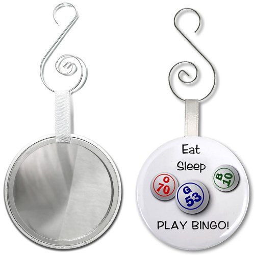 -. Title : EAT SLEEP PLAY BINGO Bingo Fan 2.25 inch Glass Mirror Backed Hanging Ornament