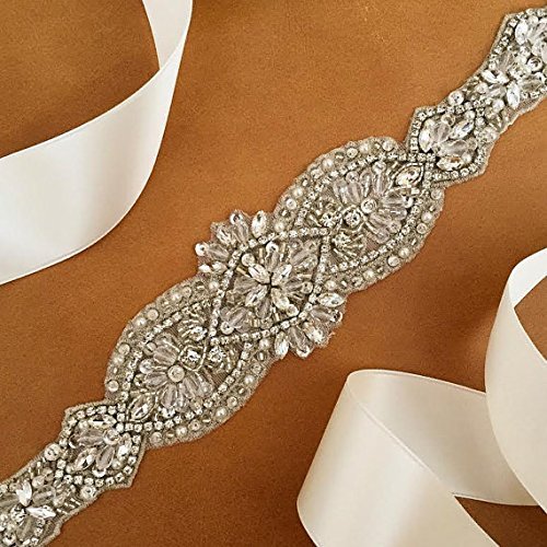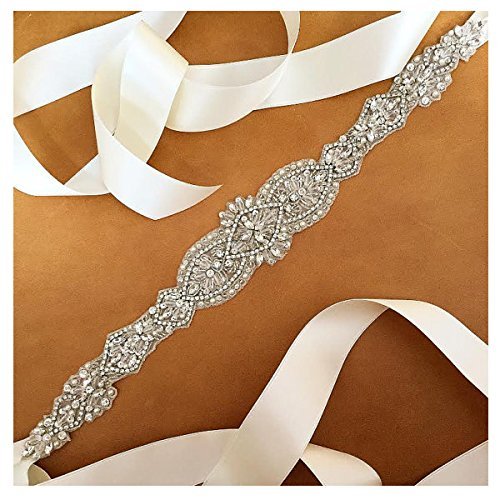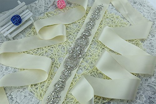 QueenDream light ivory Bridal Sash Crystals Wedding Belt