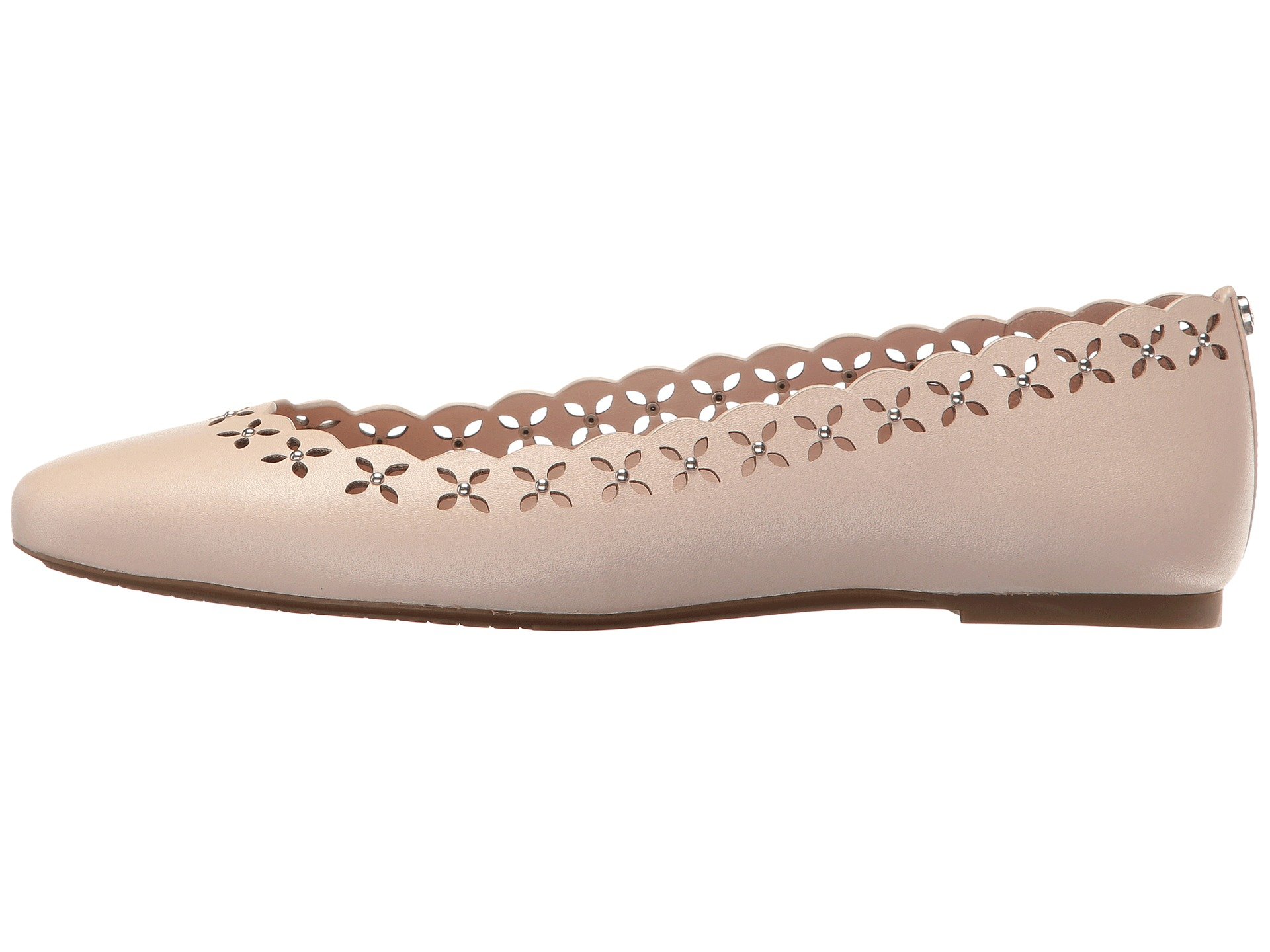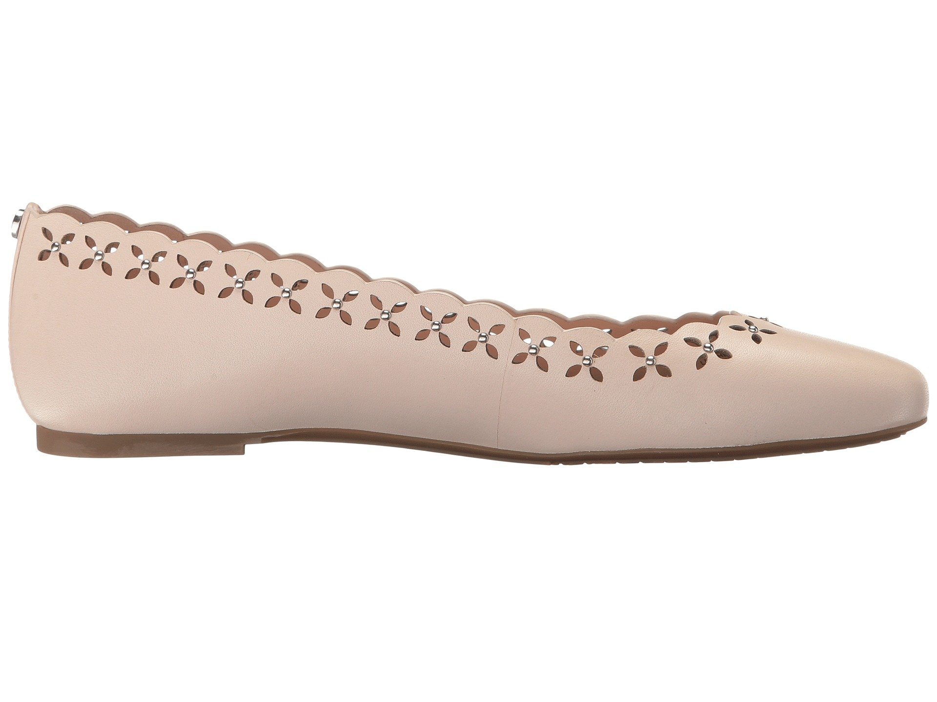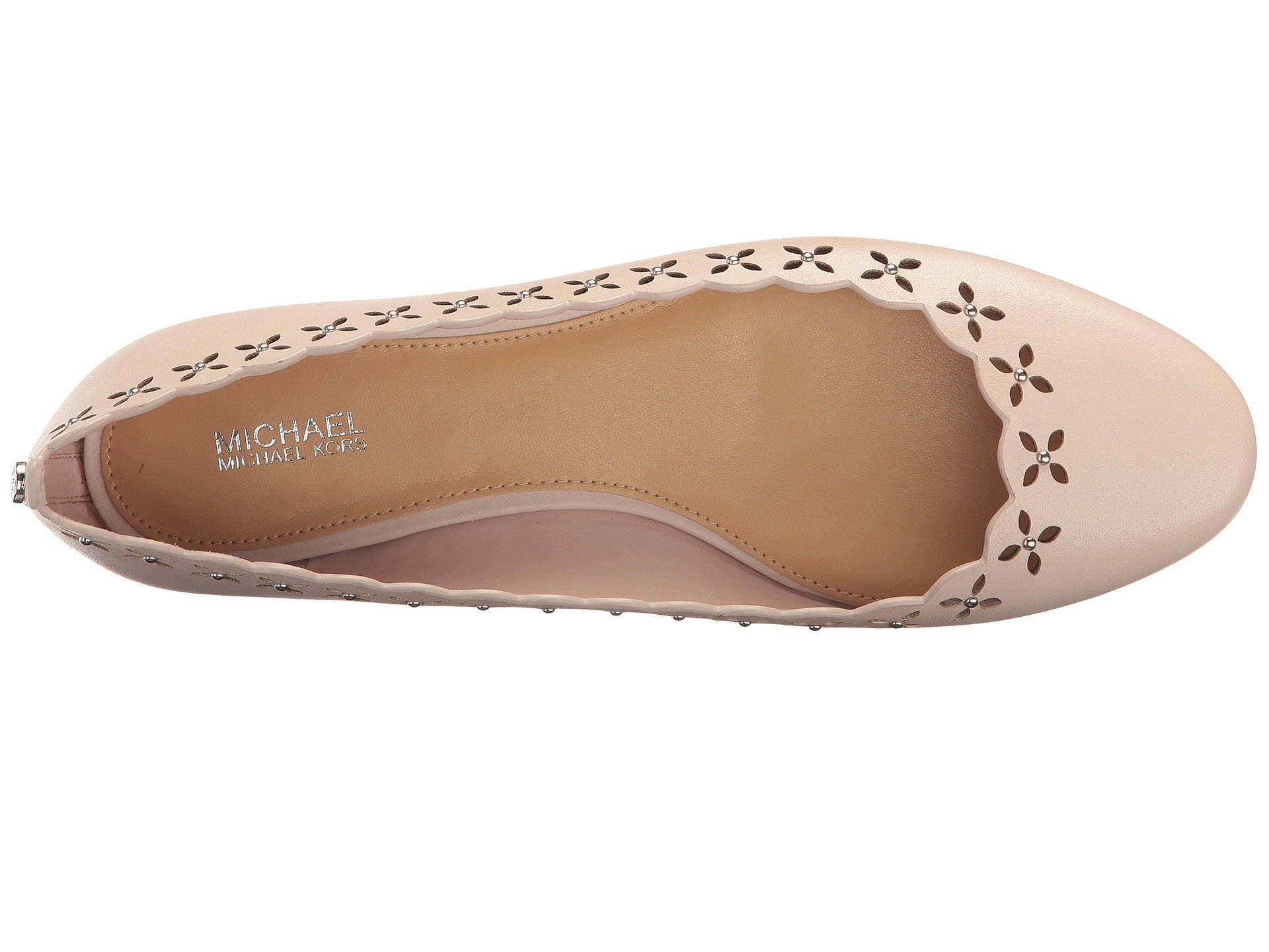 | Product Information SKU: #8845517Dance around competition this season in these eye-catching MICHAEL Michael Kors? Thalia Ballet flats.Suede or vachetta leather upper depending on colorway.Easy slip-on design.Topline perforated scallop detailing.Round-toe silhouette.Man-made lining and insole.Lightly-padded footbed. Wrapped heel.Rubber outsole.Imported. Product measurements were taken using size 8.5, width M. Please note that measurements may vary by size.Weight of footwear is based on a single item, not a pair.Measurements: Weight: 7 oz |
