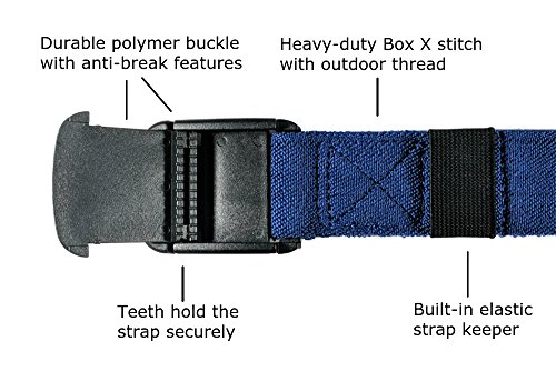The BETTA Belt is an elastic belt designed to provide the ultimate in comfort, functionality and style. Other stretch belts are made with braided elastic or thin elastic that stretches too much. The BETTA Belt is made with flat, thick and durable polyester elastic that stretches enough to maximize comfort without sacrificing support. Even betta, this web belt features a stylish thermoplastic buckle that won't set off metal detectors, so your new go-to belt doesn't need to be removed at security checkpoints. Even mo' betta, the cam-style buckle doesn't use holes, so the size can be adjusted to the perfect fit. Now with an improved, custom-designed buckle that is stronger, tougher and more compact. The BETTA Belt is the perfect accessory for everything from outdoor activities to just hanging out. Choose the path to enlightenment and order yours today.Feature