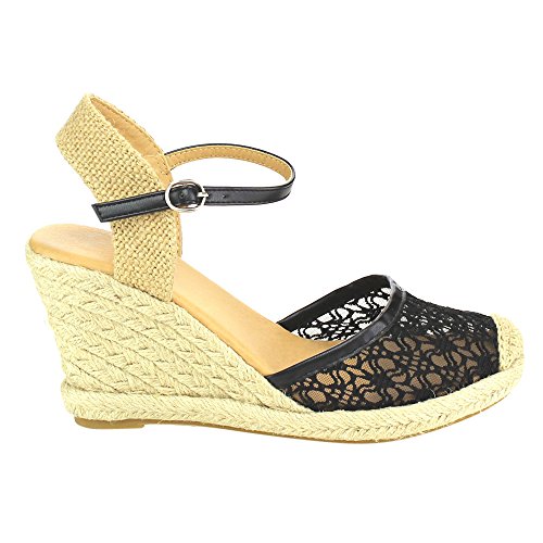 (Top Moda)/Women's/Sandals/DIRECT FROM USA/Top Moda Women's Platform Espadrille Ankle s trap Lace Wedge Sandals EMMA-2