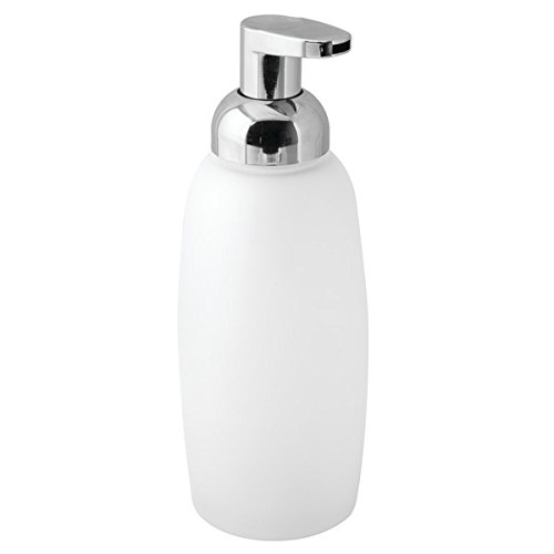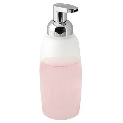 mDesign Foaming Glass Soap Dispenser Pump for Kitchen, Bathroom Vanities - Frost/Chrome