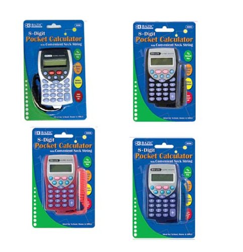 -. Feature : Keep up with the fashions; try our new calculator neck wear! / Convenient calculator is only 3-3/4" x 2-1/4" and fits neatly in a pocket. / You can also hang it around your neck with the handy color coordinated lanyard included. / Fully functioning calculator comes complete with batteries. Assorted colors. / Package of 36