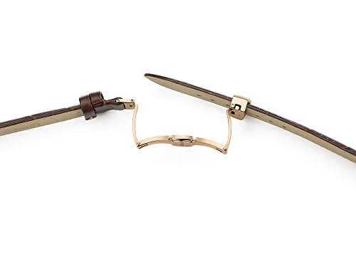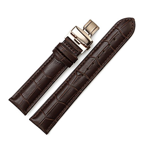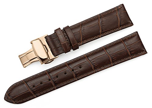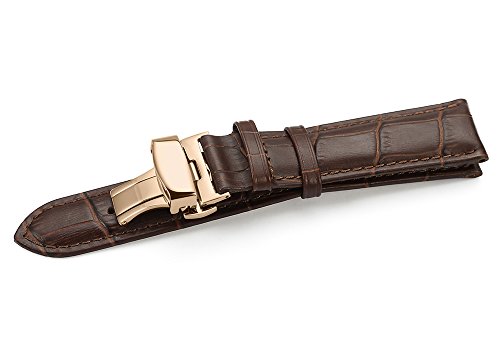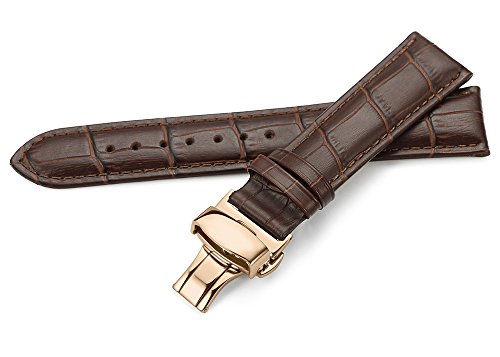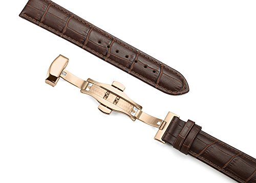 -. Title : iStrap 22mm Calf Leather Watch Band Strap W/ Rose Gold Steel Push Button Deployment Buckle Brown