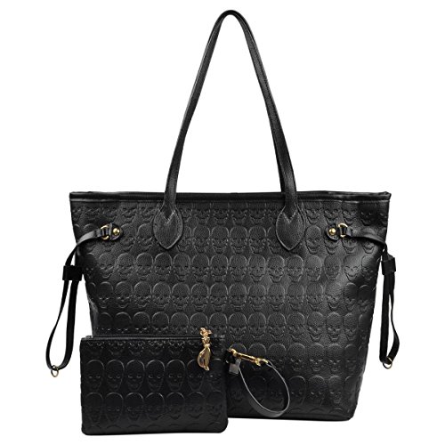 -. Title : Micom Korean Style Women Black Devil Skull Pu Leather Tote Bag Shopping Bag