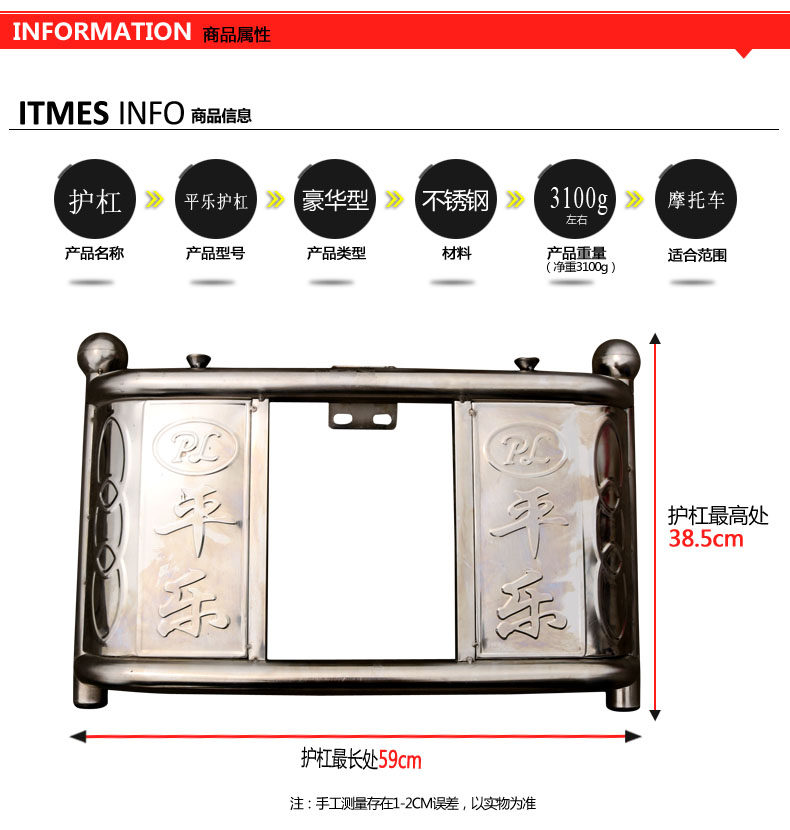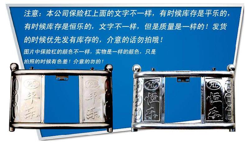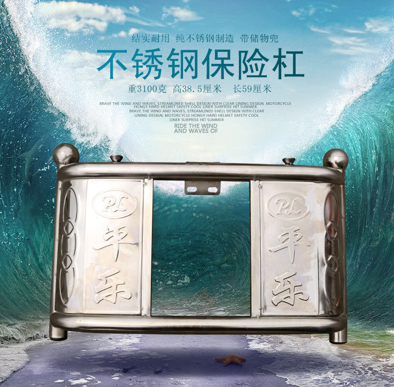 注意;是国产雅马哈男士摩托车系列的因为上车架更宽一些,东西到手需要自己稍微改动下,上面的U型卡改宽或者更换2个长一些的螺丝后面改个两孔铁片就可以了。之前有客户自己改装都取得了很好的效果!一般很少有车安装不了这个保险杠的,这个是通用型号,如果自己的车比较奇怪可以给图片客服参考一下,会给你意见的!