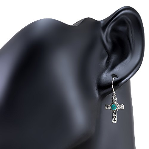 -. Title : 925 Oxidized Sterling Silver Filigree Cross Simulated Turquoise Stone Dangle Hook Earrings 1.3"