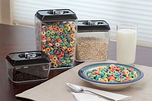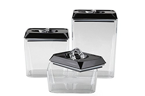 NEW! Click 'N' Lock Airtight-Seal Acrylic Square Food and Storage Containers - 3 Piece Set With Black Lids