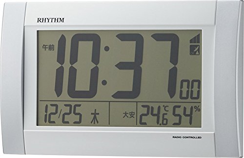 -. Title : リズム時計 掛け時計 電波 デジタル フィットウエーブD175 置き掛け兼用 温度 ・ 湿度 カレンダー 付 銀色 RHYTHM 8RZ175SR03