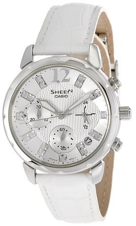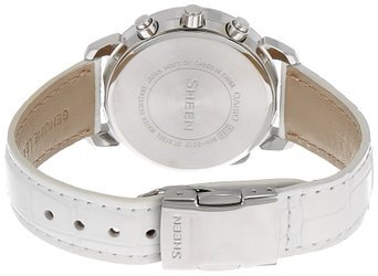 카시오 Casio Women''s Sheen SHN5010L-7A White Leather Quartz Watch with Silver Di...
