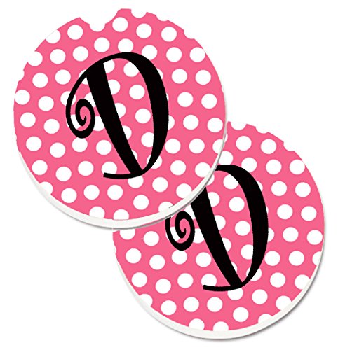 Caroline's Treasures Letter D Monogram - Pink black Polka Dots Set of 2 Cup Holder Car Coasters CJ1001-DCARC, 2.56, Multicolor