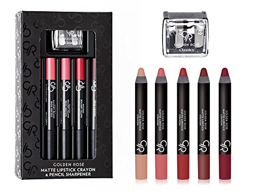 This set gives you all the colors you may need for a day or a night out! it consists of crayon 15 cameo, 13 sea pink, 09 roof terracotta red, 01 lusty red and 05 shiraz red. A jumbo sharpener is also included in the box for your convenience so you can look as fabulous as you already are anywhere, anytime! Golden rose matte lipstick crayons are high in pigment coloration, provide complete lip coverage and lasts - without smearing or fading! with added moisturizers and vitamin E to nourish and hydrate your lips, it will keep them smooth and soft. Our lipsticks are dermatologically tested, contain no parabens and no animal cruelty.Feature