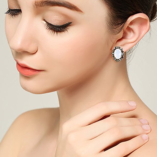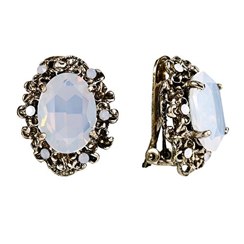 -. Title : BriLove Women's Victorian Style Crystal Floral Cameo Inspired Oval Clip-On Stud Earrings