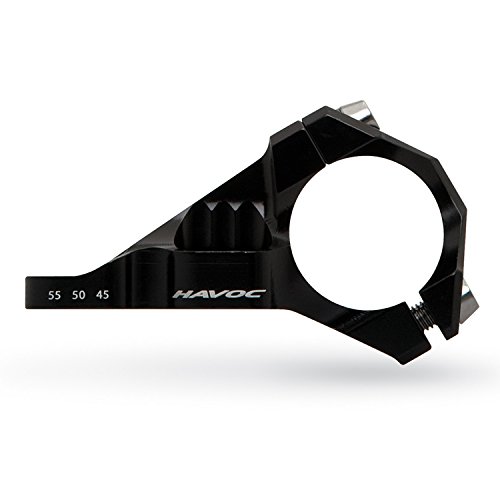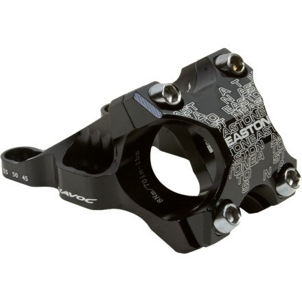 Studio : Easton Publisher : Easton Binding : Sports Product Description The Havoc Bolt-On is adaptable to three length settings (45-, 50- and 55-millimeter) and a perfect 5-millimeters of rise puts your controls in the perfect position. Distributed Stress and Top Lock Technologies optimize bar/stem interface by removing stress risers and eliminating rocking caused by floating face plates. 0