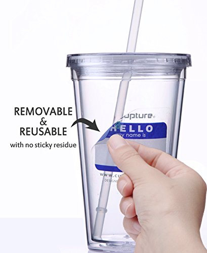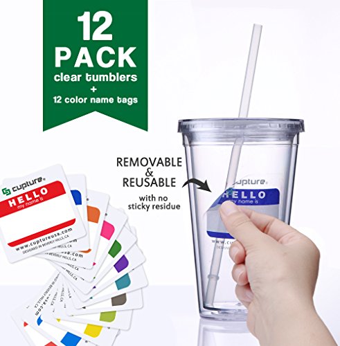 *NEW* 12 cups each come with a Removable & Reusable hello name tags (12 different colors) - with no sticky residue!