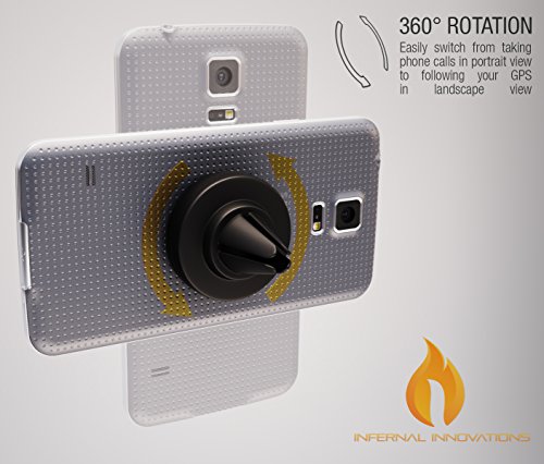 360° ROTATION | Allowing an easy, effortless switch from taking calls to following GPS navigation. There's no ball joint to turn, only beautiful magnetic force that firmly holds your phone. Use this mount just once in your car-vent and you'll be wondering why you waited so long to switch!
