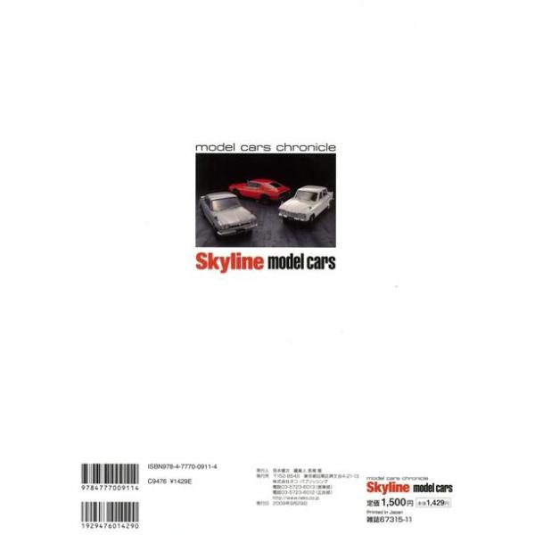 【商品基本情報】 商品名称:Skyline model cars 著者/出版社:model cars chronicle/model cars chronicle 初版発行日:2009/09/29 サイズ:A4変判 ページ数:113 ISBN/JAN:9784777009114/4528189416390