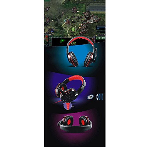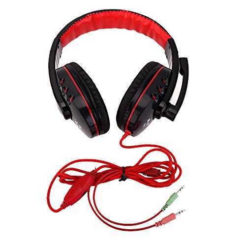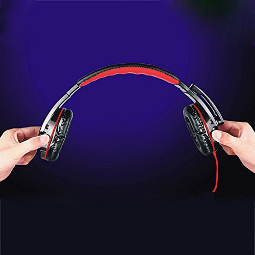 -. Feature : Unique design and stylish display, specially made for games. Built-in microphone, omnidirectional and high sensitive / Stereo sound makes your calls, music, movies and games all sound great. 3.5mm plug, volume adjustment, easy to control / Soft cushion head-pad and ear-pad, create more force bearing, reduce the weight of headset for wearing comfort. High tenacity and adjustable headband, scratch-resistant and durable / Standard 40mm hi-fi speaker unit, ensures the great sound quality / High fidelity, pure and clear, reduce the outside noise, protect your hearing. Suitable for gaming like CS DOTA2, music, movie or conversation, etc