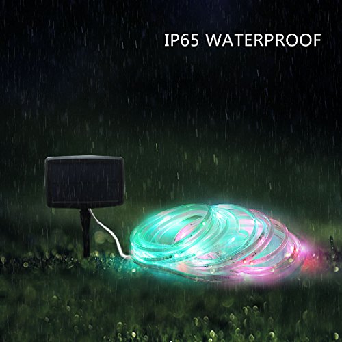 - WATER RESISTANT:Both the rope lights and the solar panel are IP65 Waterproof. No worry to use them in the rain.