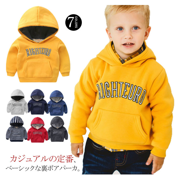 | カジュアルの定番、ベーシックな裏ボアパーカ。ベビーからジュニアまで着られる豊富なサイズ展開◎カジュアルな雰囲気でデイリーコーデにオススメ! | |
