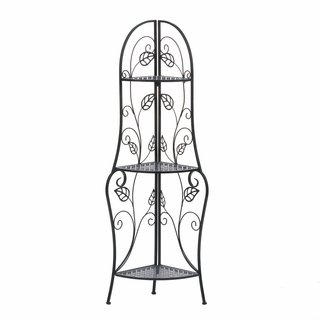 Studio : Quotech Publisher : Quotech Binding : Kitchen Product Description A sweet treat for any room, this corner baker shelf will display your plants, collectibles and more while enhancing your room with its pretty design. Trellis-inspired shelves climb up the curling metal frame that’s decorated with lovely leaves. It will bring any dull corner to life! Item weight: 7.2 lbs. 11 1/2" x 18 1/4" x 50" high. Metal. UPC: 849179015312. 0