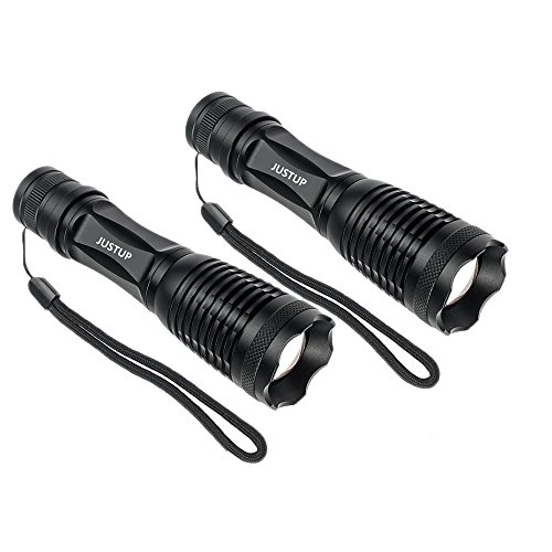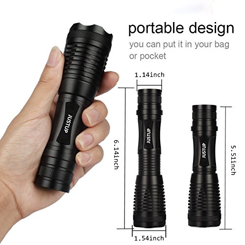 Tactical Flashlight, JUSTUP LED Flashlight 5 Modes Zoomable Waterproof Handheld Flashlight Portable Torch for Emergency Camping Hiking (2 Flashlights)