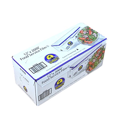 Plastic Food Film Seal Wrap in Cutter Dispenser, Stretch Tight, Food Service Grade, 12" x 2000' Square Feet Roll