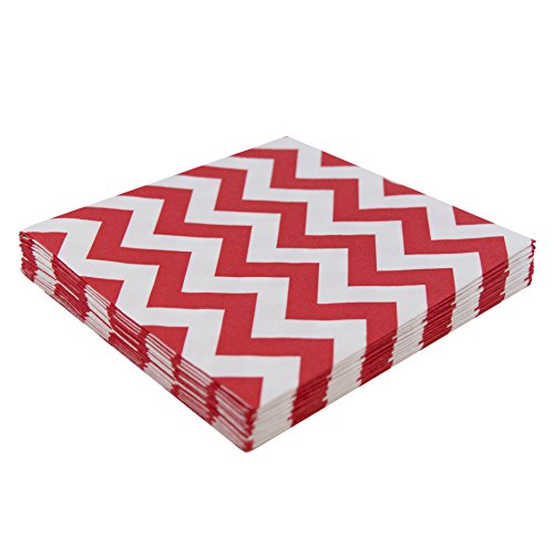 JAM Paper Small Chevron Beverage Napkins - 5" x 5" - Red Chevron - 16/Pack