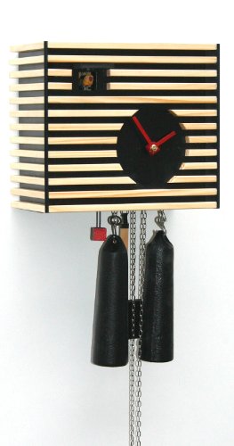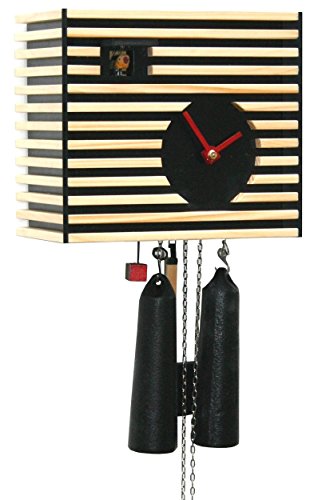 Studio : Rombach Haas Publisher : Rombach Haas Binding : Kitchen Product Description Colour: Black Height: 20 cm/8 inch Width: 22 cm/8.3 inch Depth: 13 cm/5.1 inch Exclusive Black Forest Clock from the Design Collection. The cuckoo calls every half hour once and the number of the hours every full hour. The clock has a 8 day REGULA movement with manual night shut off. It is made of wood, handmade by the Rombach Haas Clock Factory in Schonach, Black Forest. 2 years product warranty The size refers only to the clock, without pendulum and weights. 0